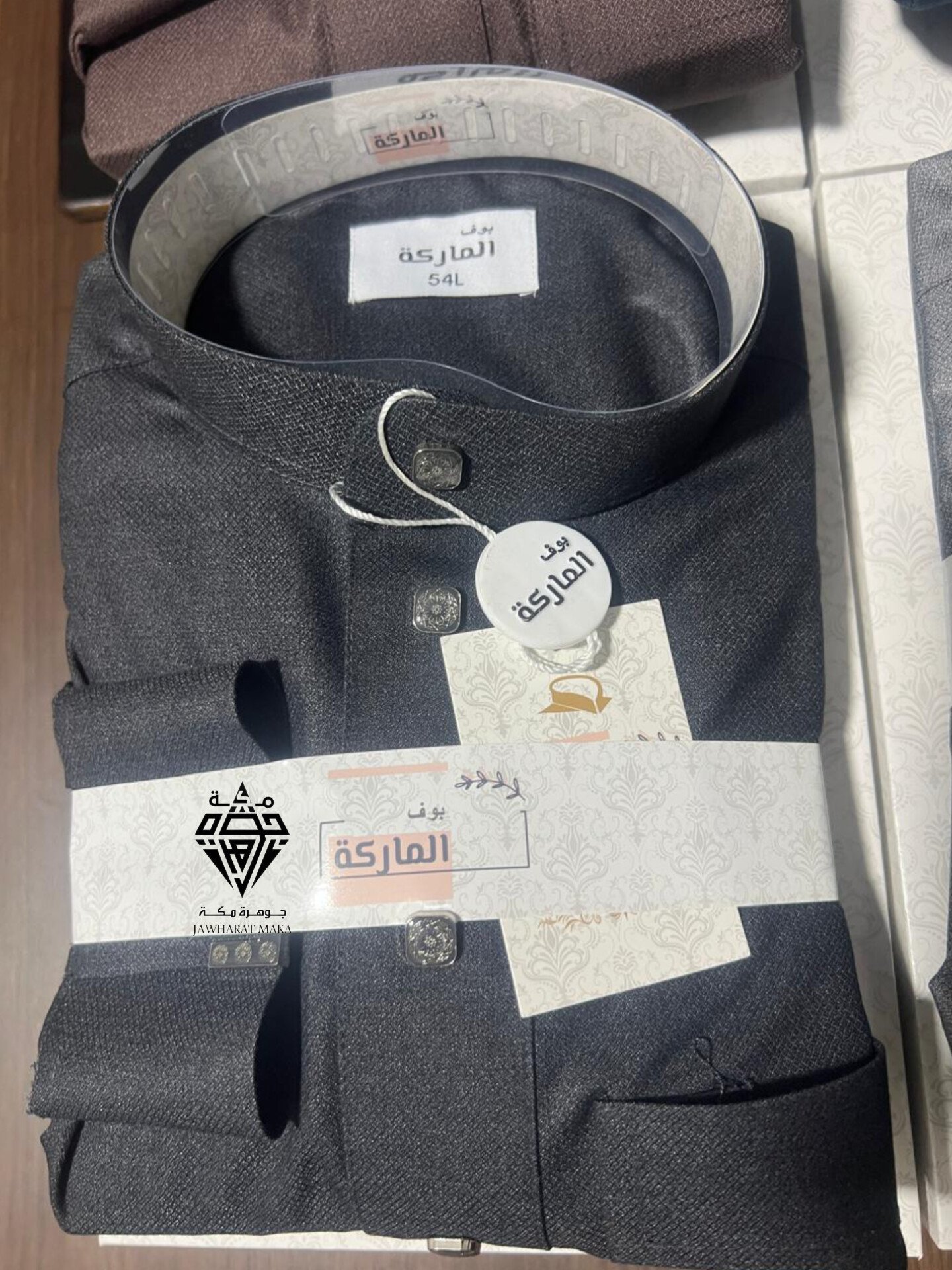 يأتي بقماش عالي الجودة ذي ملمس ناعم ونقشة خفيفة تضيف لمسة عصرية مميزة، مع ياقة ثابتة أنيقة وأزرار مربعة بتفاصيل منقوشة تعكس الفخامة والدقة في التشطيب.