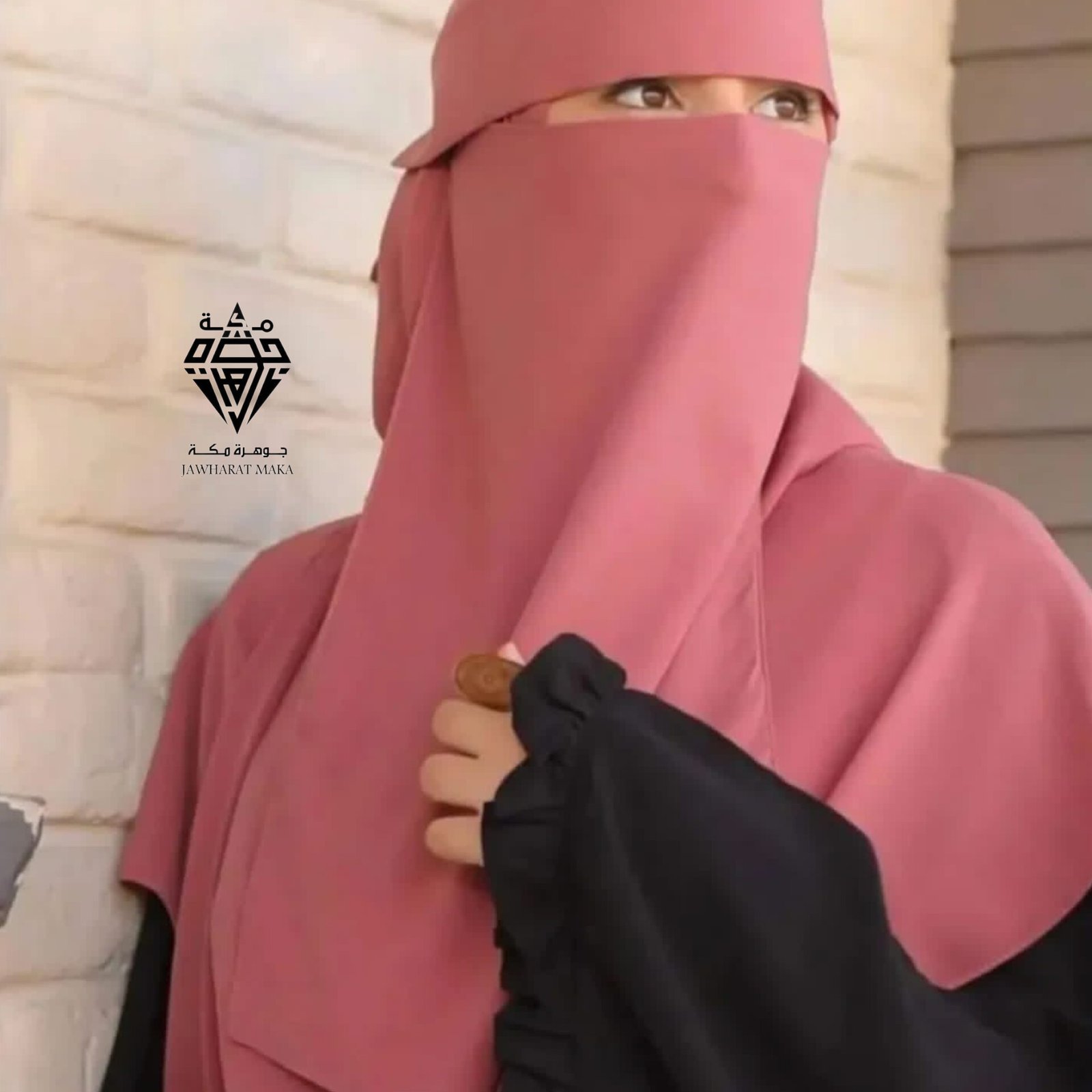 نقابًا بلون وردي غباري (Rose blush) بتصميم أنيق وناعم.